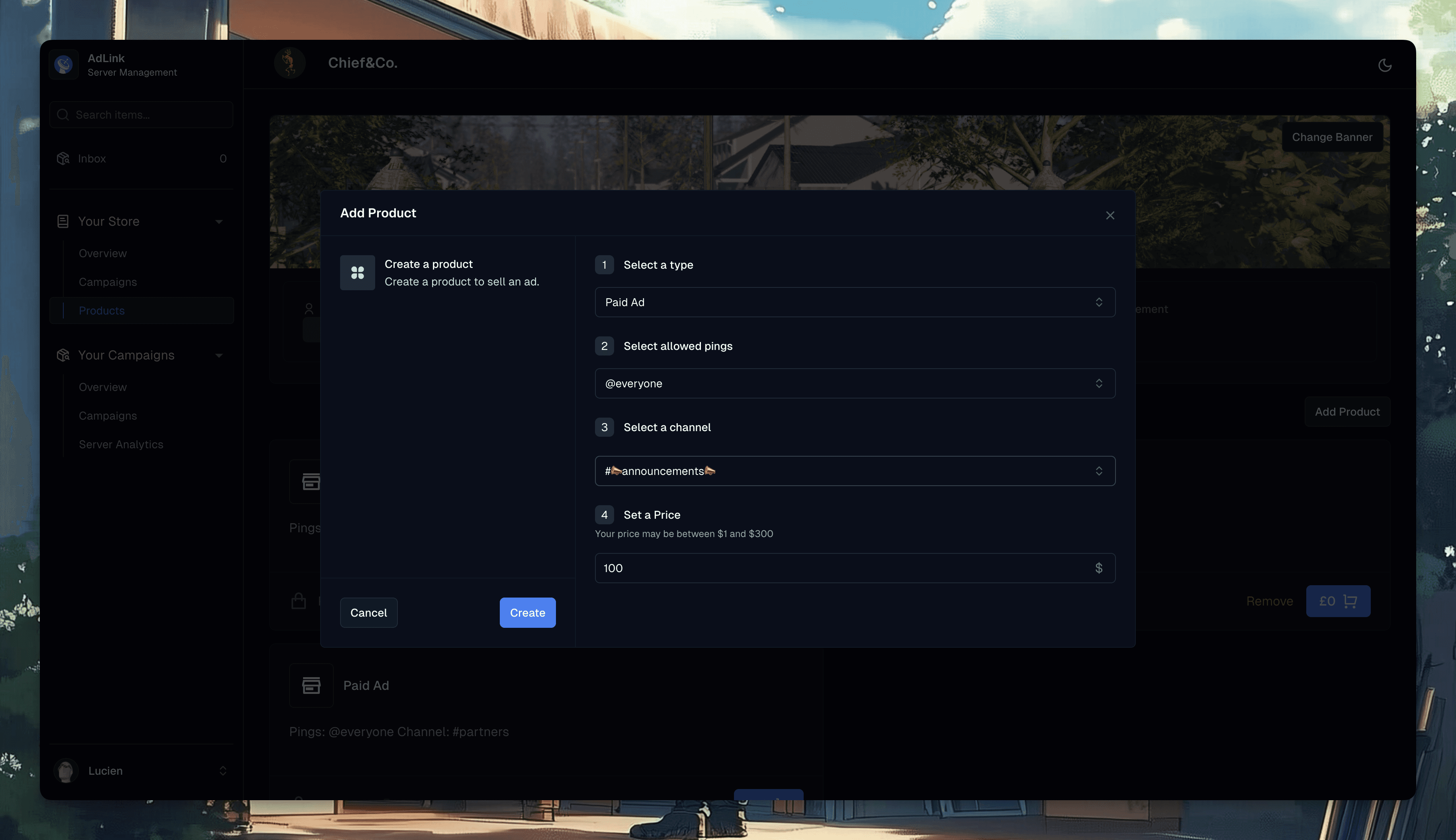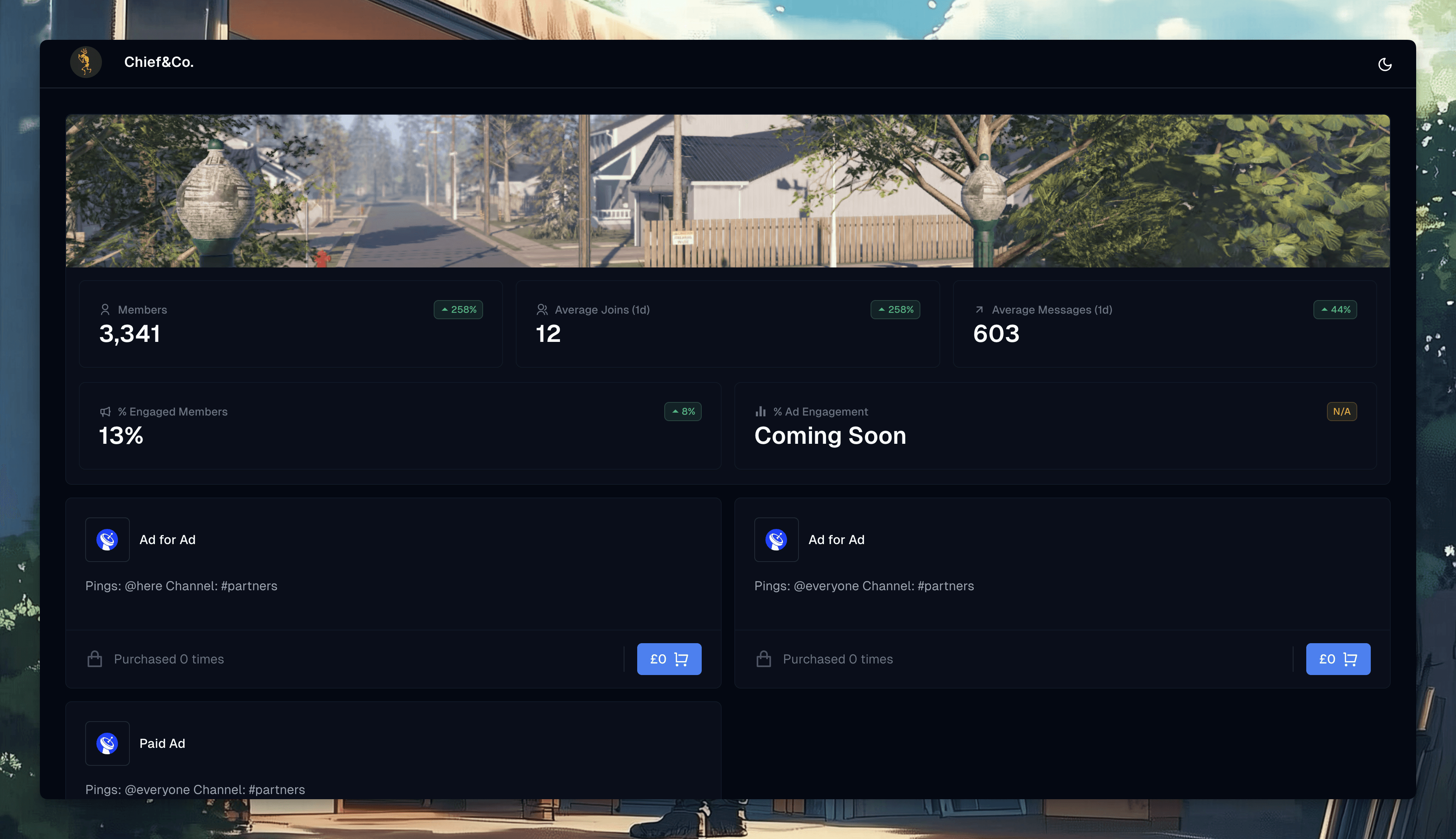 Create and manage ads with ease. Use pre-made templates or custom designs, automate posting, and track analytics in real time. Set free or paid ads, customize pings, channels, and advanced settings for each campaign.