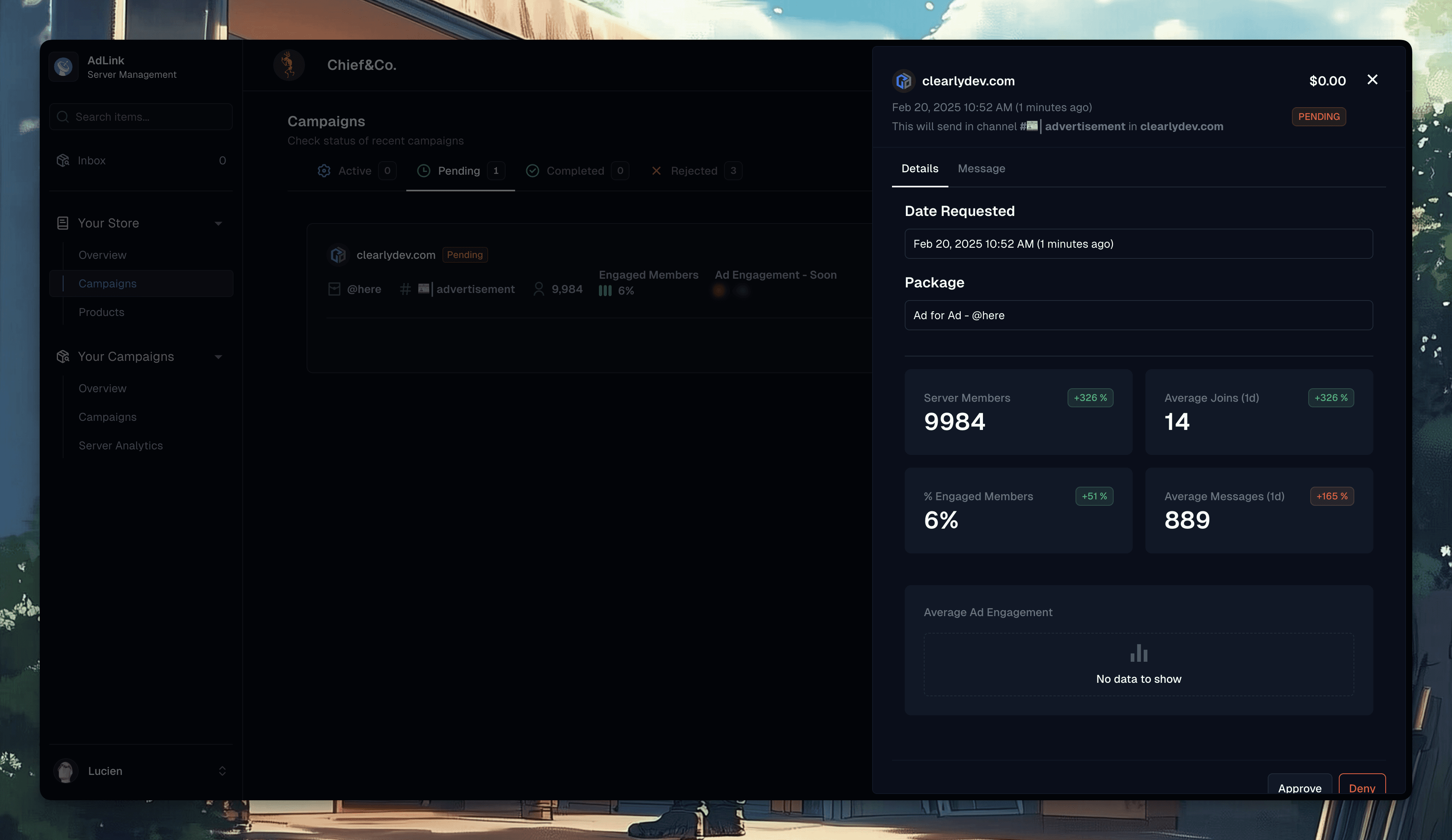 Assess the server and ad message before approving or rejecting.
