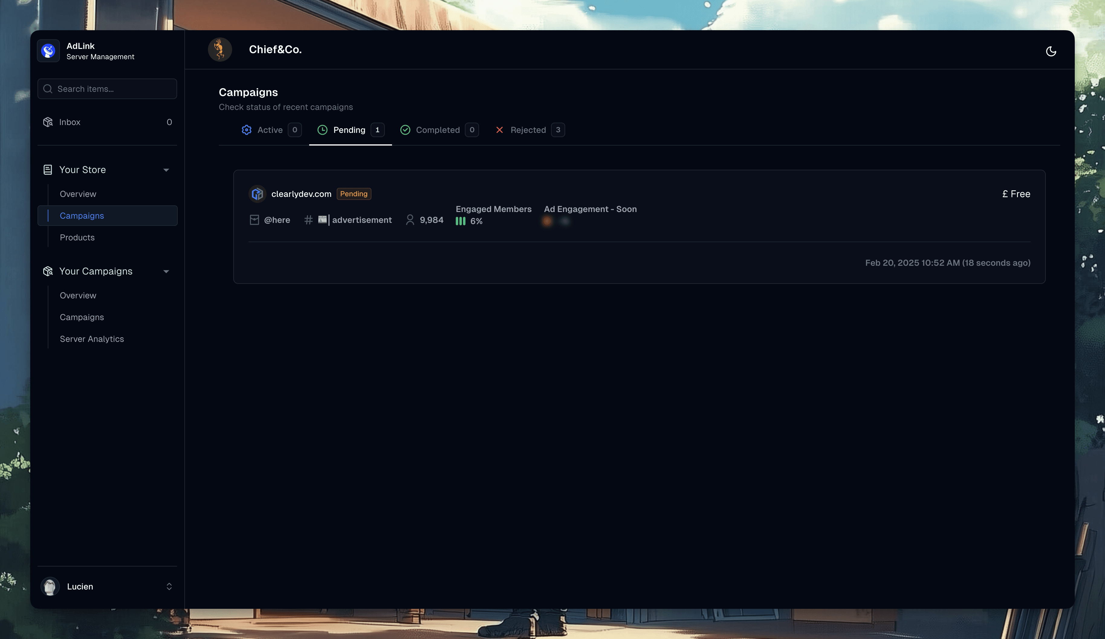 A user purchases a campaign, which appears on your dashboard for review.